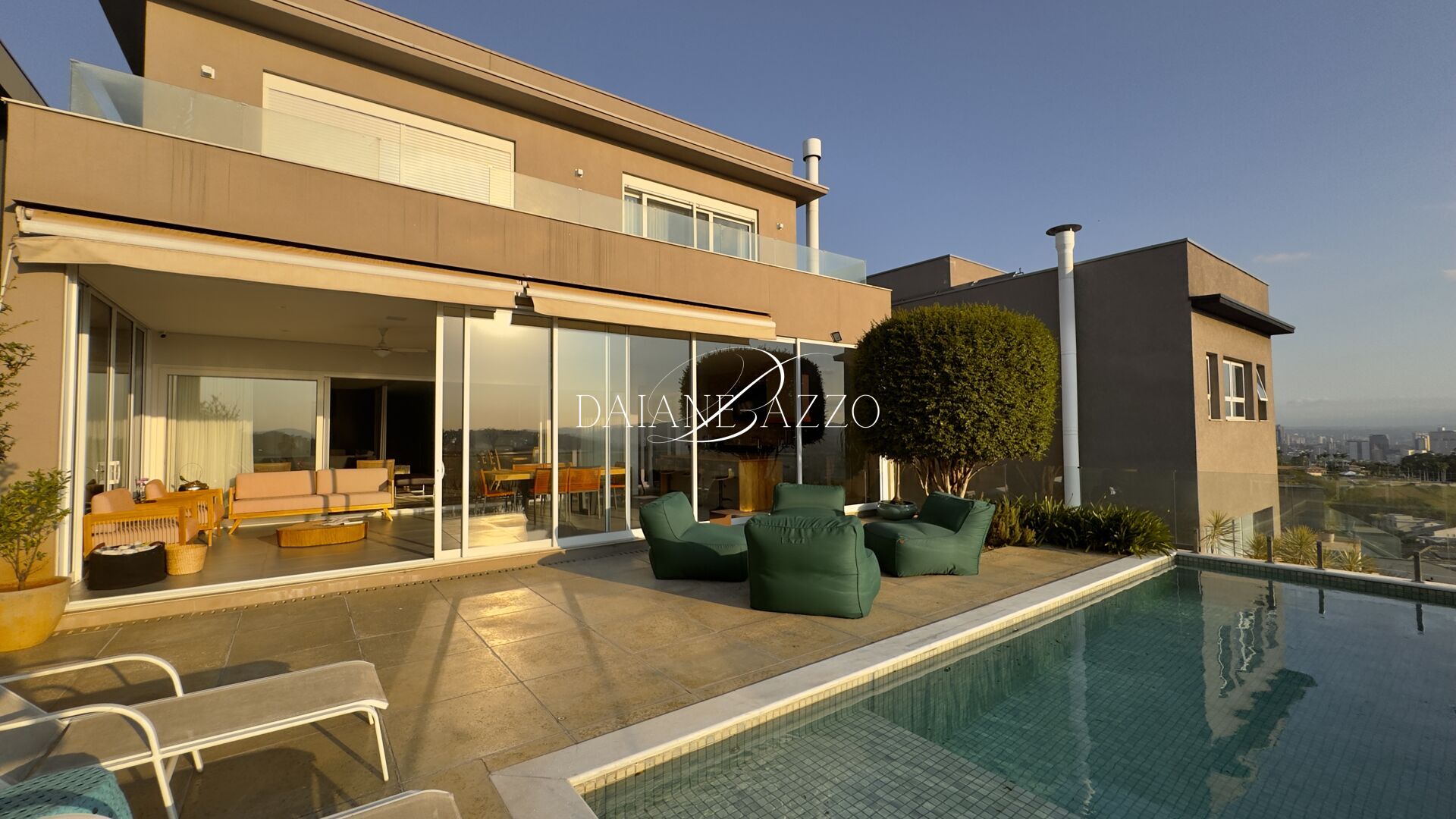 Projetada para aproveitar ao máximo o terreno e a orientação solar, esta residência no Tamboré 10 destaca-se pela vista para o pôr do sol e pela perfeita integração entre os ambientes internos e externos.